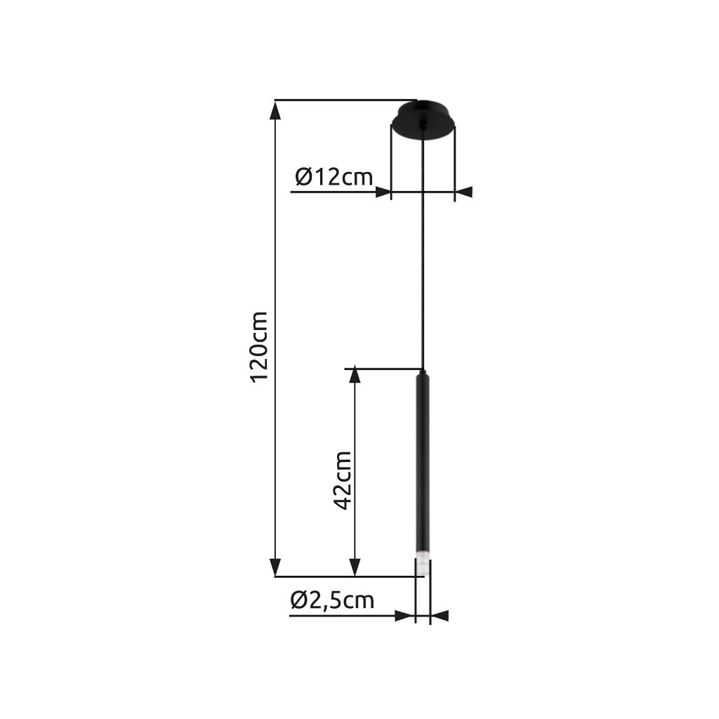 Závesné svietidlo, kov čierny, akryl satinovaný, číry, kábel PVC čierny, ø: 120 mm, V: 1200 mm, bez žiarovky 1xG9 LED, max. 4W 230V