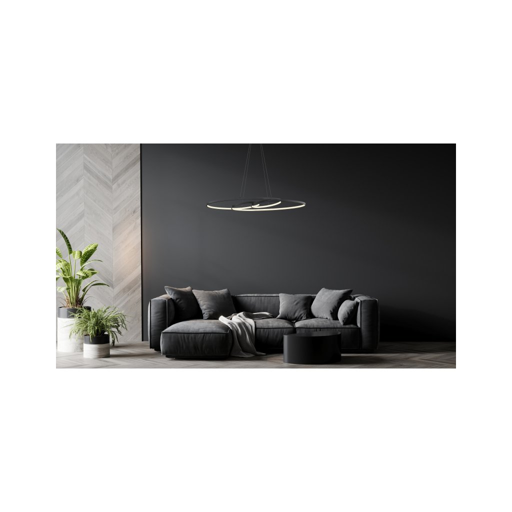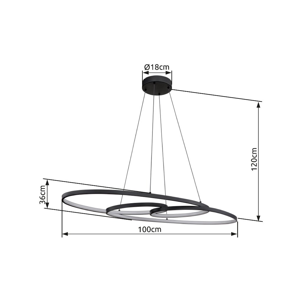 Závesné svietidlo, kov čierny, hliník čierny matný, plast biely, kábel PVC čierny, niekoľko úrovní cez nástenný vypínač, fixácia farieb, pamäťová funkcia, DxŠxV:1000x360x1200mm, vrátane LED 39W 230V, výstup 1880lm, zmena farby svetla 2700. 4000/6500K