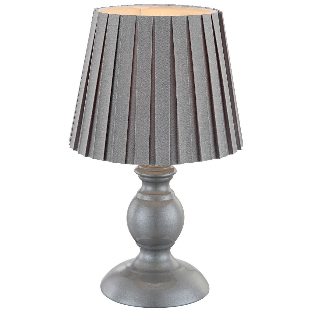 Tradičnú okrúhlu stolnú lampu zo série Metallic sa ľahko začlení do každej miestnosti. Stojan lampy je v sivej farbe, ktoré dopĺňa zaujímavo tvarovane tienidlo. Žiarovka nie je v balení, odporúčame použiť LED žiarovky.
