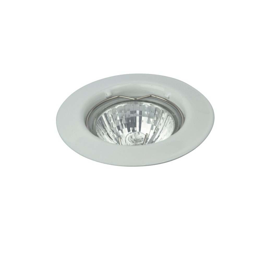 Bodové svietidlo klasického vzhľadu pre sadrokartónové podhľady a nábytkové panely v bielej farbe. Pevný svetelný zdroj poskytuje jednopolohové osvetlenie. Svietidlo sa dodáva s päticou Gx5,3, ak chcete svietidlo napojiť na 220-230V je potrebné si dokúpiť objímku pod kódom 00402. Žiarovka tiež nie je súčasťou balenia.
