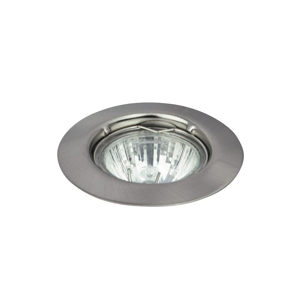 Bodové svietidlo klasického vzhľadu pre sadrokartónové podhľady a nábytkové panely v saténovej chrómovej farbe. Pevný svetelný zdroj poskytuje jednopolohové osvetlenie. Svietidlo sa dodáva s päticou Gx5,3, ak chcete svietidlo napojiť na 220-230V je potrebné si dokúpiť objímku pod kódom 00402. Žiarovka tiež nie je súčasťou balenia.