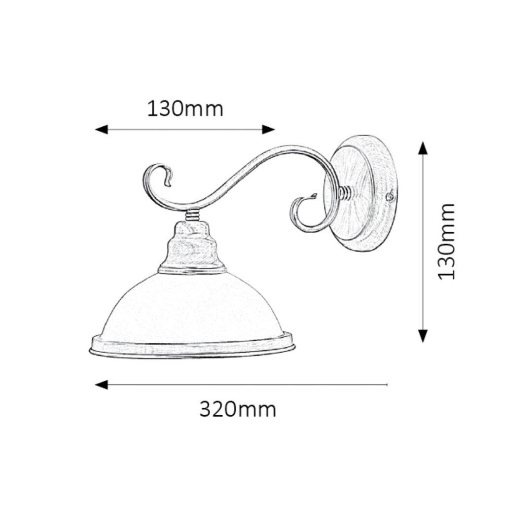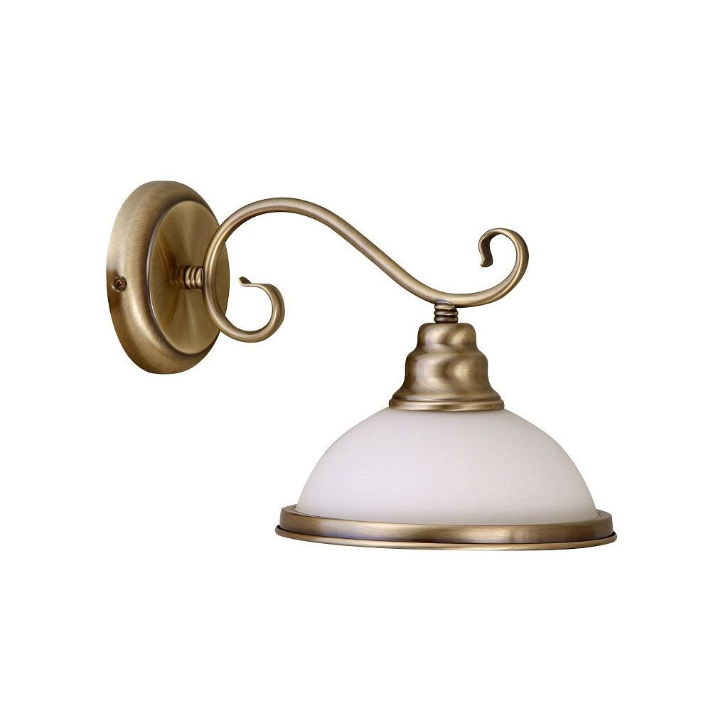 Klasicky vyzerajúce nástenné svietidlo s 1 objímkou. Svietidlo je vyrobené z bronzového kovu a má tienidlo z bieleho skla. Hodí sa do chodby, obývačky alebo do spálne a tiež do pracovne. Žiarovka nie je v balení, odporúčame použiť LED žiarovky.