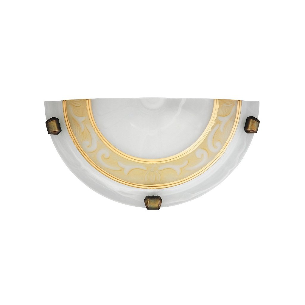 Nástenné svietidlo v stredomorskom štýle s priemerom 30 cm. Kovová konštrukcia s hrubým vzorovaným tienidlom z alabastrového skla a bronzovými úchytkami. Hodí sa ako osvetlenie do chodby, na toaletu alebo nad schodisko a tiež do špajze. Žiarovka nie je v balení, odporúčame použiť LED žiarovky.