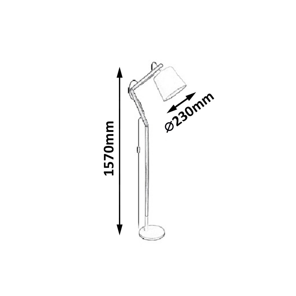 Stojacia lampa v škandinávskom štýle s 1 zásuvkou a káblovým vypínačom. Nastaviteľná konštrukcia z bukového dreva a bieleho kovu do výšky 157 cm s bielym textilným tienidlom. Žiarovka nie je v balení, odporúčame použiť LED žiarovky.