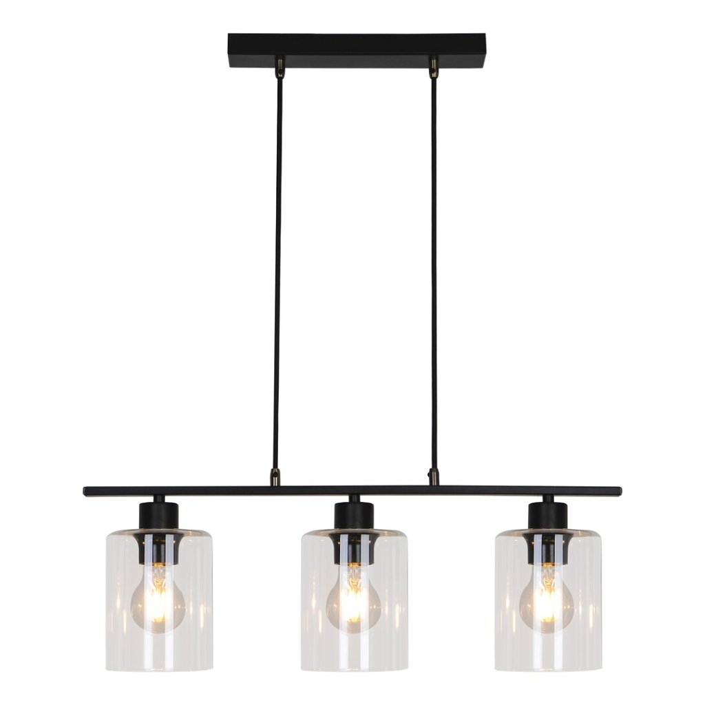 Prívesok Miroslaw v industriálnom štýle môže byť typickým doplnkom v modernej obývačke, spálni alebo pracovni. Matné čierne kovové svietidlo je doplnené tromi valcovými tienidlami z číreho skla, ktoré umožňujú vidieť svetelné zdroje úplne vo vnútri svietidla. Žiarovky nie sú v balení, odporúčame použiť LED dizajnové žiarovky.