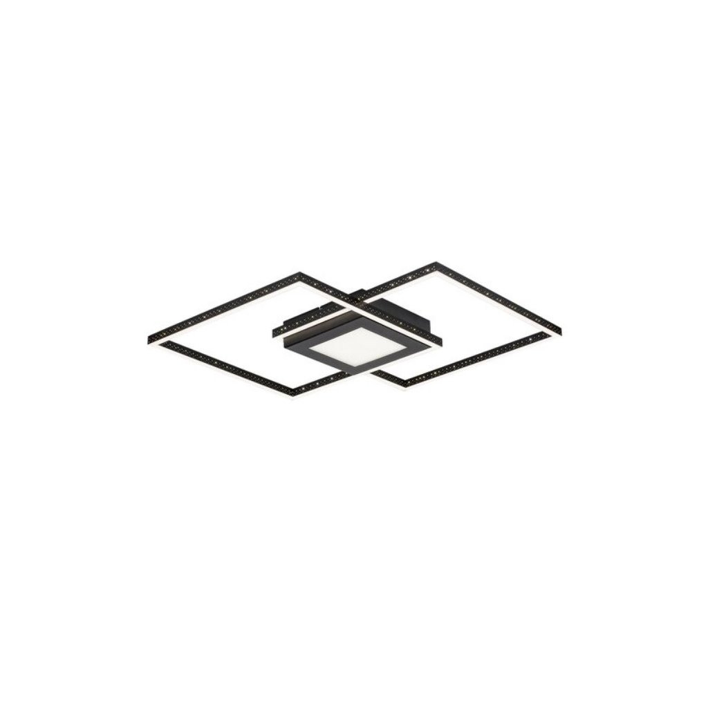 Moderné stropné svietidlo z kovu v čiernej a bielej farbe. Ideálne na osvetlenie pracovne alebo spálne. Jej dizajn pozostáva z dvoch čiernych rámov, ktoré boli umiestnené jeden v druhom.
