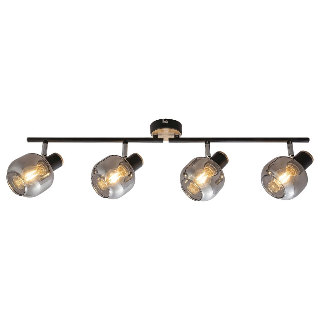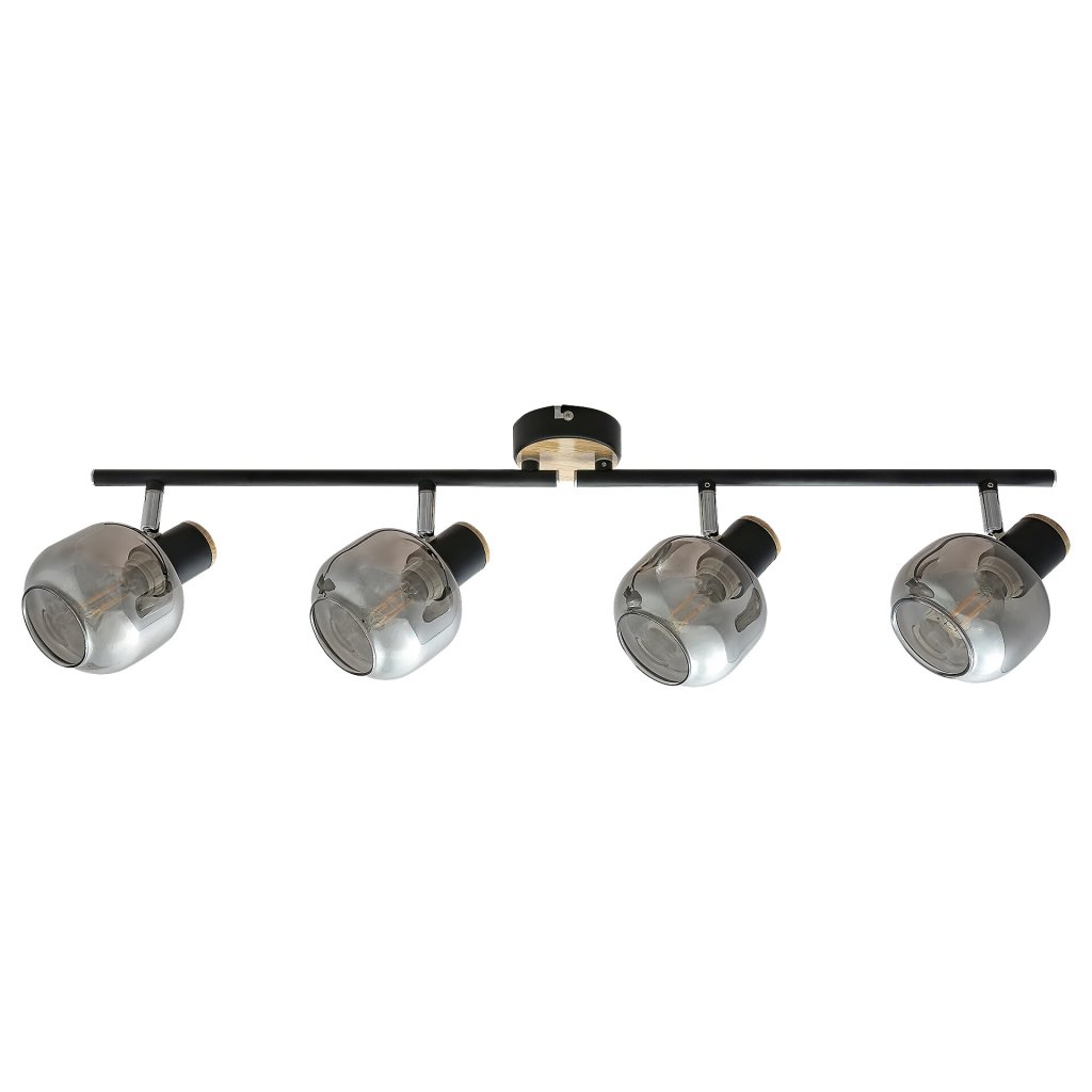 Bodové svietidlo Salazar, vyrobené z kombinácie kovu a skla, môže byť so svojím industriálnym štýlom výrazným kusom nábytku vo vašej domácnosti. Čierne svietidlo je doplnené o okrúhlu základňu s dubovým vzorom a kryt z dymového skla. Vďaka pohyblivej hlave lampy je možné ovládať svetlo lampy podľa želania. Môže byť skvelým doplnkom do vašej spálne alebo obývačky a pod. Žiarovka nie je v balení, odporúčame použiť LED žiarovky.