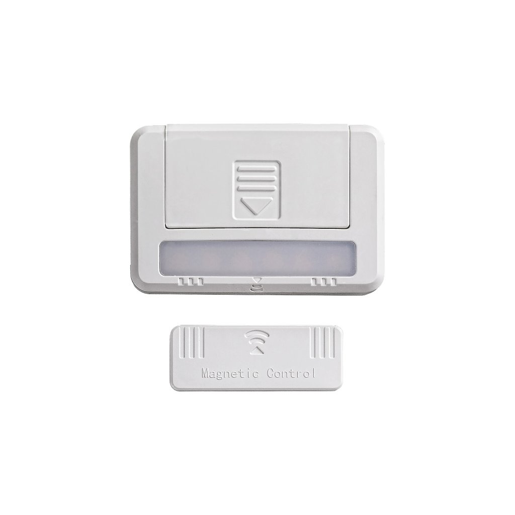 Osvetlenie zásuviek a skriniek Magnus je jednoduché a skvelé riešenie pre osvetlenie miest, kde je inak málo svetla: možno ho nainštalovať do kuchynskej linky, šatníka, topánky alebo knižnice atď. Magnus funguje na princípe magnetickej indukcie a skladá sa z dvoch častí: LED svietidla s magnetickým spínačom a magnetu. Tieto dve jednotky musia byť namontované na dvoch rôznych povrchoch danej zásuvky alebo dvierok skrinky tak, aby boli po zatvorení v danej vzdialenosti. Po vytiahnutí zásuvky alebo otvorení dvierok sa svetlo po zatvorení rozsvieti a vypne. Osvetlenie zásuvky a skrinky z plastu funguje na 2 AAA batérie. Batérie nie sú súčasťou balenia. Obsah balenia: 2 lampy, 2 magnety, 4 obojstranné lepidlá.