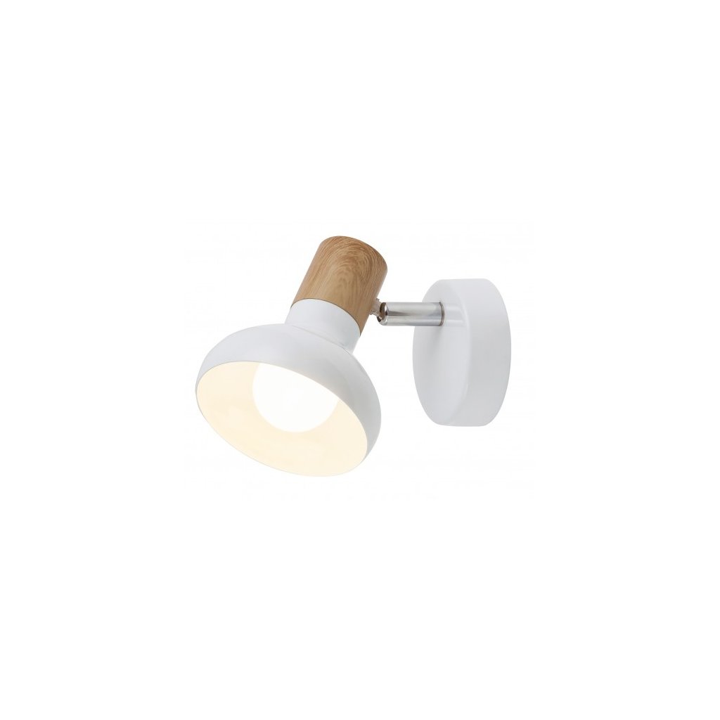 Nástenné bodové svietidlo v škandinávskom štýle s bielou a bukovou farebnou kombináciou. Vďaka pohyblivej hlave lampy je možné ovládať svetlo lampy podľa želania. Môže byť skvelým doplnkom do vašej spálne alebo obývačky a pod. Žiarovka nie je v balení, odporúčame použiť LED žiarovky.