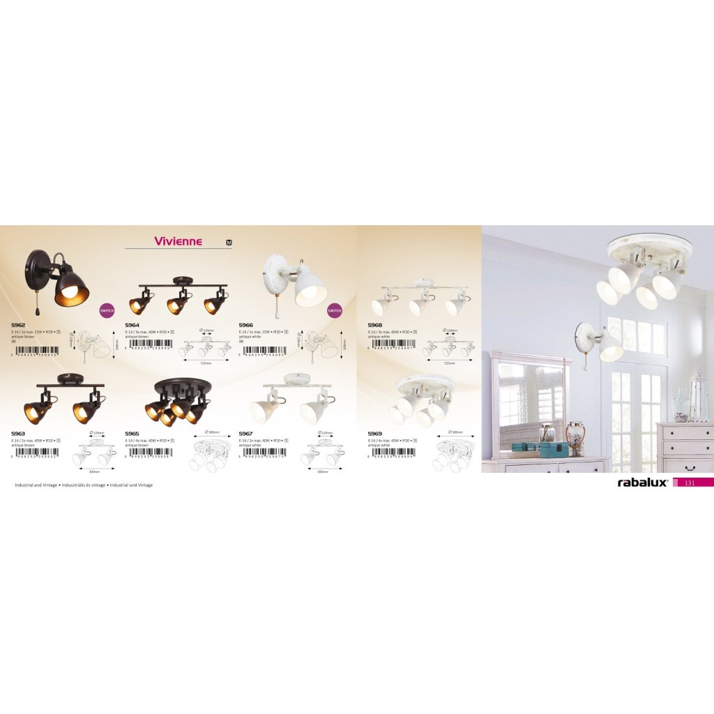 Štýlové nástenné svietidlo Vivienne so spínačom od firmy Rábalux. Vhodné do všetkých moderných miestností. Farba je antická biela a závit je E14