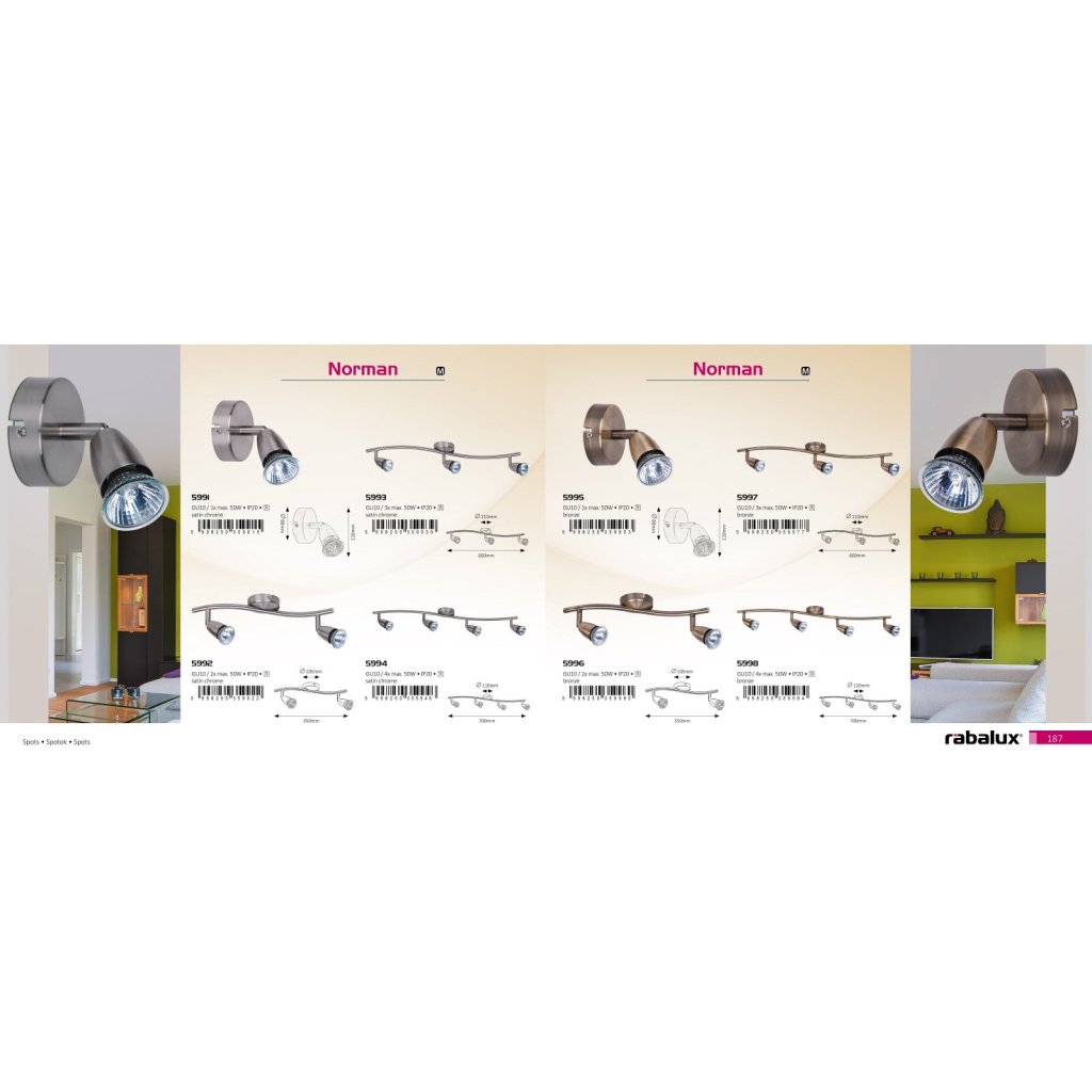 Rábalux - táto maďarská firma je už niekoľko rokov na trhu v oblasti osvetľovacej techniky. Vyrába do interiéru aj do exteriéru svietidlá v klasickom aj v modernom prevedení. Led zabudované zdroje v luxusných svietidlách dožičia jasné svetlo interiéru. Nemusíte byť umelec, stačí ak použijete dekoračné svietidlá od Rábaluxu a dizajnovo máte ozdobený Váš byt. Rábalux nezabudol ani na exteriérové svietidlá so senzorom, vrelo Vás privítajú a dobre osvetlia chodníky a priestory pred domom.