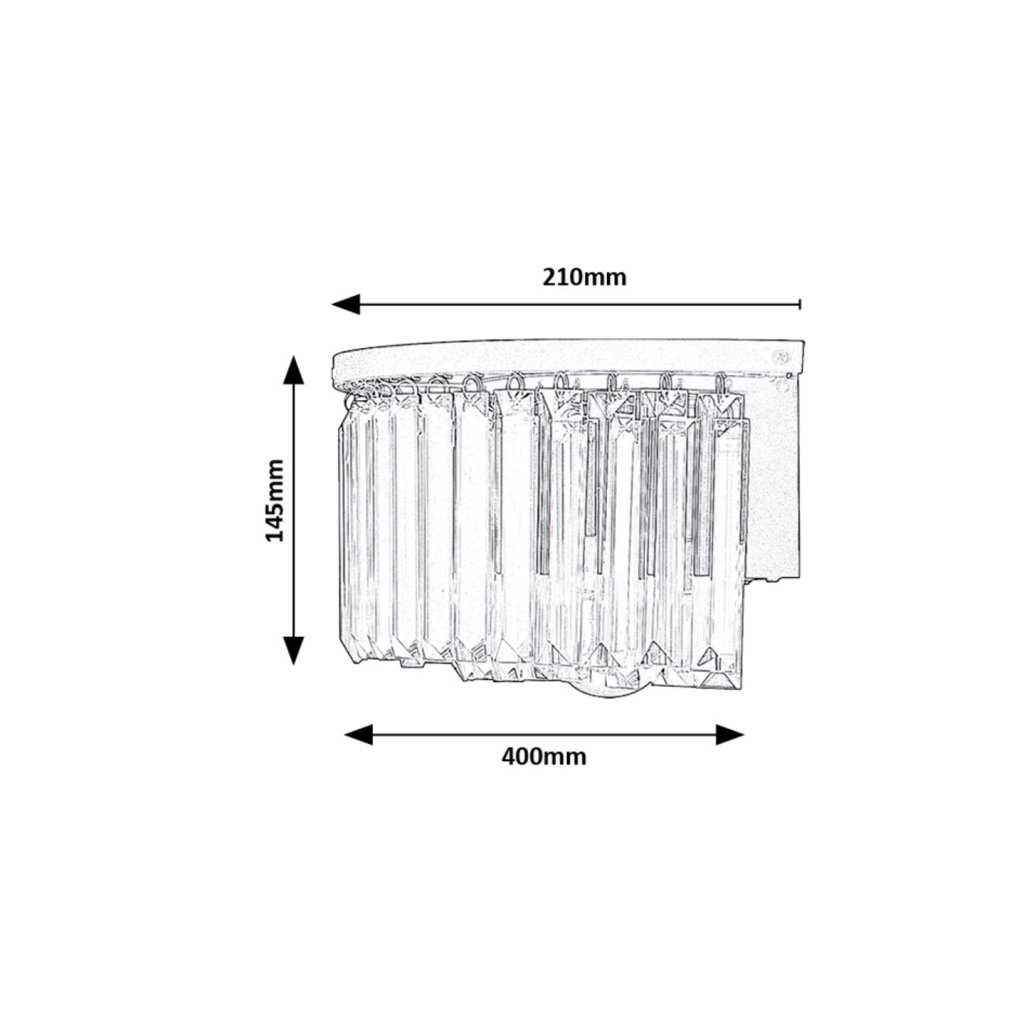 Elegantné nástenné svietidlo Eloisa v klasickom štýle sa odporúča predovšetkým do obývacej izby alebo spálne. Kovové svietidlo čiernej farby je doplnené priehľadnými sklenenými príveskami, ktoré zakrývajú svetelný zdroj ako záves v polkruhu a dodávajú tomuto modelu lustrový vzhľad. Eloisa môže byť pripevnená na stenu pomocou čiernej dekoratívnej základne; svietidlo ako celok má polkruhový tvar. Toto nástenné svietidlo je možné použiť s jednou žiarovkou s výkonom až 25 W. Typ objímky je E27. V závislosti od vašich preferencií a miestnosti, kde chcete tento hviezdny model nainštalovať, si môžete vybrať žiarovku vyžarujúcu teplé alebo prirodzené biele svetlo. Ak ju inštalujete v spálni, odporúča sa používať ju so žiarovkou vyžarujúcou teplé biele svetlo, pretože prispieva k útulnej, intímnej atmosfére, je uvoľňujúca pre vaše oči a pomáha vám relaxovať pred spaním. Rozmery nástenného svietidla Eloisa sú nasledovné: šírka 400 mm, výška 145 mm, vzdialenosť od steny 210 mm. Tento model je dodávaný bez svetelného zdroja.