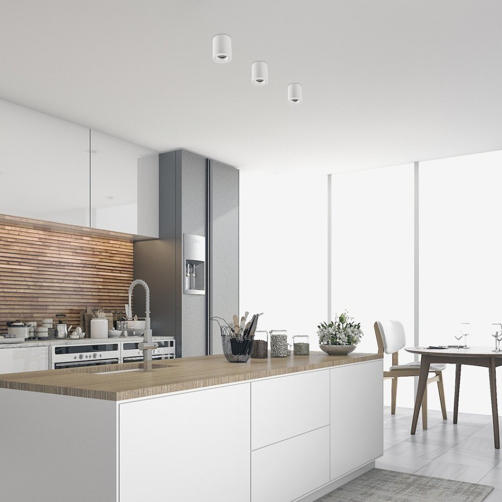 Moderné stropné stropné svietidlo Kobald so svojím chladným a čistým vzhľadom môže byť skvelou voľbou do obývačky, jedálne, kuchyne alebo pracovne. Vzhľadom na malé rozmery je dobré inštalovať do miestnosti viac ako len jeden kus. Elegantný valcový model bielej farby je vyrobený z hliníka a je doplnený o biele akrylové tienidlo. Tento downlighter je možné použiť s jednou žiarovkou s výkonom až 25 W. Typ objímky je GU10. V závislosti od vašich preferencií a miestnosti, kde chcete lampu nainštalovať, si môžete vybrať žiarovku vyžarujúcu teplé alebo prirodzené biele svetlo. Ak ho inštalujete v jednej z najpoužívanejších miestností vášho domova – napr. v obývačke alebo kuchyni – je dobré ho použiť so svetelným zdrojom vyžarujúcim prirodzené biele svetlo, aby ste dosiahli čistý, moderný efekt. Tento typ svetla je zároveň ideálny na prácu, pretože vám pomáha udržiavať koncentráciu. Priemer tohto stropného svietidla je 80 mm, vzdialenosť od stropu je 100 mm. Lampa Kobald je dodávaná bez svetelného zdroja.