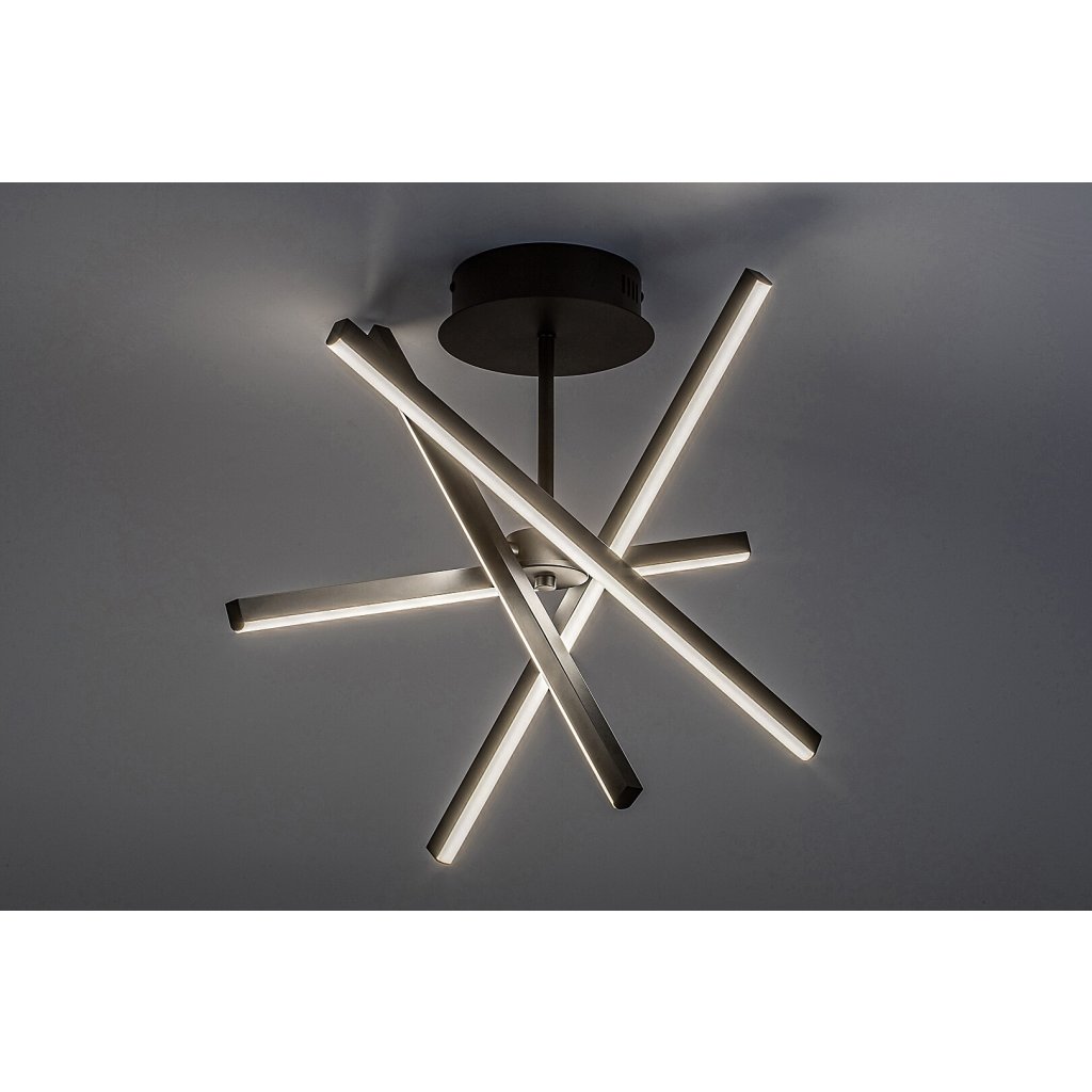 Vďaka svojmu jedinečnému vzhľadu môže byť moderné stropné svietidlo Matilde definujúcim kusom zariadenia vašej obývačky, spálne alebo pracovne. Tento veľkolepý model pozostáva zo štvorcových pretínajúcich sa tyčovitých prvkov, ktoré je možné jeden po druhom otáčať, takže tvar lampy môžete ľubovoľne meniť. Čierna kovová lampa je doplnená o biele silikónové tienidlo a je možné ju upevniť na strop pomocou malej okrúhlej dekoratívnej základne. Matilde má zabudovaný LED svetelný zdroj energetickej triedy G s výkonom 30 W, svetelným tokom 1 200 lúmenov s tienidlom a 2 040 lúmenov bez tienidla a životnosťou 20 000 hodín. Farebná teplota svetelného zdroja je 4000 K a vyžaruje prirodzené biele svetlo vytvárajúce čistý, moderný efekt, ktorý je ideálny ako do najpoužívanejších miestností vášho domova, tak aj do práce. Rozmery stropného svietidla Matilde sú nasledovné: priemer 490 mm, vzdialenosť od stropu 320 mm, inštalačný priemer 140 mm.