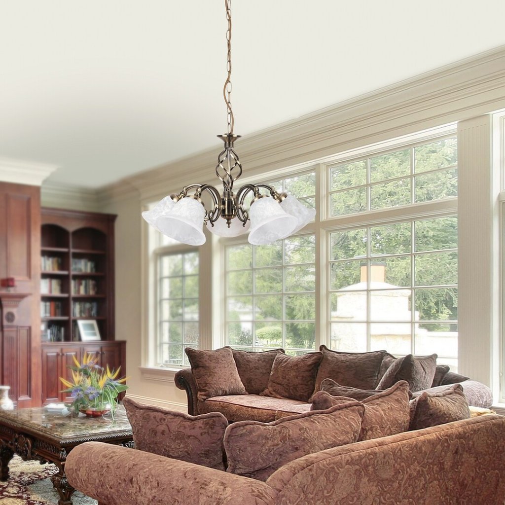Klasické závesné svietidlo vyrobené z kovu vo farbe bronz je doplnené bielymi sklenenými tienidlami. Svietidlo krásne ukáže v jedálny, v kuchyni alebo v obývačke. V závislosti od vášho vkusu a miesta použitia si môžete vybrať zdroj teplého alebo prirodzeného bieleho svetla.