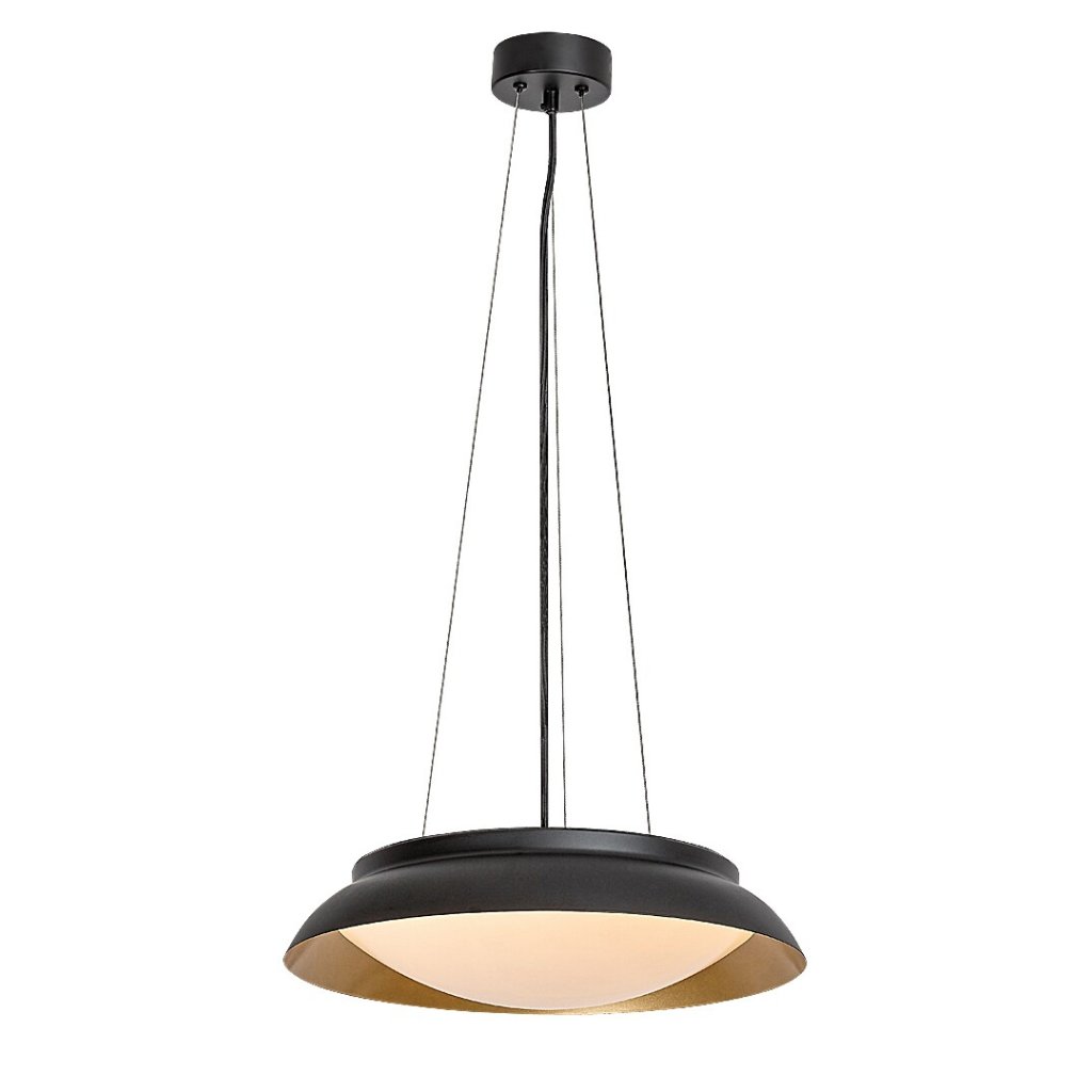 Moderný prívesok Hafsa môže byť skvelou voľbou do obývačky aj spálne. Okrúhly čierno-zlatý kovový model sa skladá zo širokého tanierového svietidla, bieleho plastového tienidla a malej okrúhlej ozdobnej základne. Vďaka svojim teplým odtieňom sa toto elegantné svietidlo dobre hodí do interiérov preferujúcich povrchy a doplnky z dreva a iných prírodných materiálov. Svietidlo má zabudovaný LED svetelný zdroj energetickej triedy G s výkonom 24W, svetelným tokom 1250 lumenov s tienidlom a 1500 lumenov bez tienidla. Teplota farby svetelného zdroja je 3 000 K a má skutočne vynikajúcu životnosť: 36 000 hodín! Hafsa vyžaruje teplé biele svetlo, ktoré vám pomôže vytvoriť útulnú, intímnu atmosféru v miestnosti, ktorá je ideálna na odpočinok a navodenie nálady na spánok. Prívesok je vybavený textilným káblom a jeho rozmery sú nasledovné: priemer 400 mm, vzdialenosť od stropu je nastaviteľná 600–1 200 mm, inštalačný priemer je 95 mm.