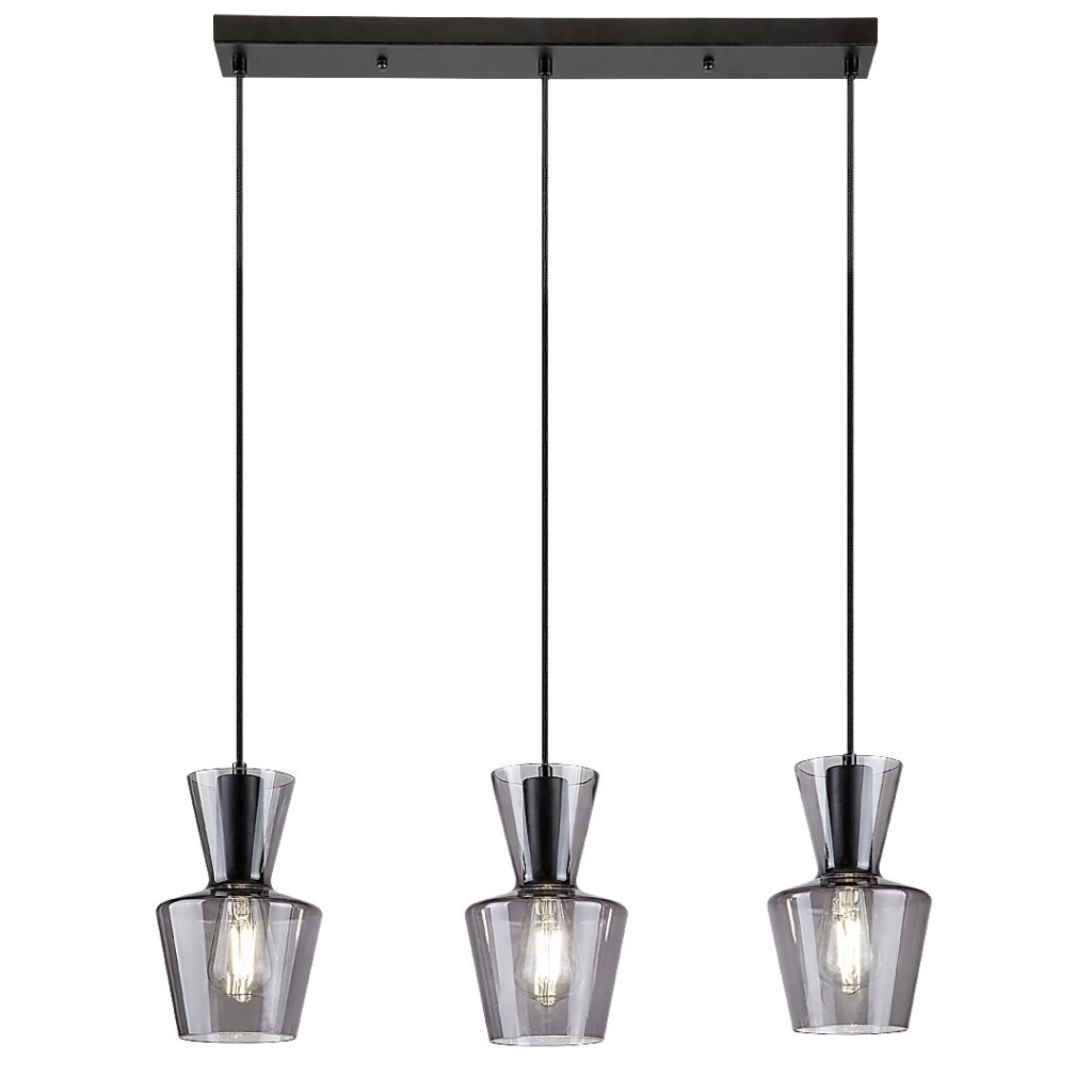 Vďaka striedmosti farieb a kreatívnemu dizajnu môže byť prívesok Abra s 3 žiarovkami štýlovým kúskom vybavenia mnohých moderných obývacích izieb. Matná čierna kovová lampa je doplnená o tónované sklenené tienidlá, ktoré sa smerom nadol zužujú a sú v spodnej časti otvorené, pričom hlavy svietidiel, ktoré sú umiestnené vedľa seba v rade, sú pripevnené k dlhej podlhovastej čiernej dekoratívnej základni pomocou textilných káblov. . Menšia časť každého tienidla, ktorá sa smerom nahor rozširuje – a ktorá zároveň robí tento model výnimočným – obopína hornú časť hláv lampy ako golier. Abra je použiteľná s tromi žiarovkami, každá s výkonom do 60 W. Typ objímky E27. Keďže sa prívesok odporúča predovšetkým do obývačky, odporúčame ho použiť so žiarovkou vyžarujúcou prirodzené biele svetlo, ktoré vám pomôže dosiahnuť moderný, čistý efekt. Svietidlo má tieto rozmery: šírka 600 mm, výška každého tienidla 250 mm, priemer každého tienidla 150 mm, vzdialenosť svietidla od stropu 1 700 mm. Prívesok Abra s 3 žiarovkami je dodávaný bez svetelných zdrojov.