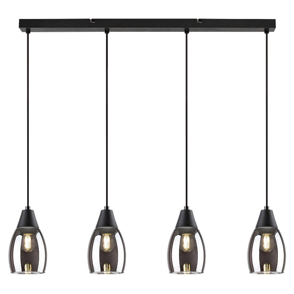 Vďaka svojmu zdržanlivému, harmonickému dizajnu môže byť 4-žiarovkový prívesok Ilmari elegantným kúskom vybavenia mnohých moderných obývacích izieb. Čiernu kovovú lampu dopĺňajú smerom nadol mierne sa rozširujúce a v spodnej časti otvorené tienidlá z tónovaného skla a dlhý podlhovastý čierny ozdobný podstavec. Hlavy svietidiel visia v rovnakej výške vedľa seba v rade. Ilmari je možné použiť so štyrmi svetelnými zdrojmi, každý s výkonom do 15 W. Typ objímky E27. Keďže sa prívesok odporúča predovšetkým do obývačky, odporúčame ho použiť so žiarovkami vyžarujúcimi prirodzené biele svetlo, ktoré vám pomôžu dosiahnuť moderný, čistý efekt. Keďže svetelné zdroje dobre vidia aj cez tónované sklenené tienidlá, vzhľad tohto závesného svietidla môžete ešte viac rozveseliť pomocou žiaroviek s netradičným tvarom. Svietidlo má tieto rozmery: šírka 720 mm, priemer každého tienidla 100 mm, vzdialenosť od stropu 1 200 mm. Závesný 4-žiarovkový Ilmari je dodávaný bez svetelných zdrojov.