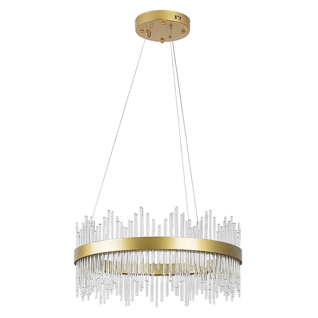 Inteligentný prívesok Mabel v klasickom štýle ponúka veľkolepé riešenie osvetlenia v obývacej izbe alebo spálni. Odporúčame hlavne tým, ktorí majú radi stropné svietidlá viac zdobené a efektné a hľadajú model s veľkým svetelným tokom. Kovové svietidlo zlatej farby je doplnené o priehľadné sklenené tienidlo a pomocou okrúhleho ozdobného podstavca je možné ho upevniť na strop. Hviezdny prívesok sa skladá z prstencového prvku zlatej farby a z neho vyčnievajúcich valcových častí, ktoré pripomínajú svietiace cencúle. Mabel má zabudovaný LED svetelný zdroj energetickej triedy G s výkonom 36 W, svetelným tokom 2 480 lúmenov s tienidlom a 2 700 lúmenov bez tienidla a životnosťou 36 000 hodín. Farebnú teplotu žiarovky je možné nastaviť pomocou nástenného vypínača. môžete nastaviť 3 000, 4 000 alebo 6 000 K, teda teplé, prirodzené alebo studené biele svetlo. Rozmery inteligentného závesného svietidla sú nasledovné: priemer 580 mm, inštalačný priemer 200 mm, vzdialenosť od stropu je nastaviteľná v rozmedzí 500–1 000 mm.