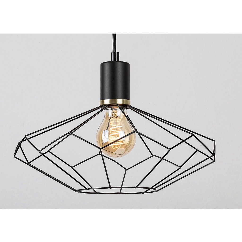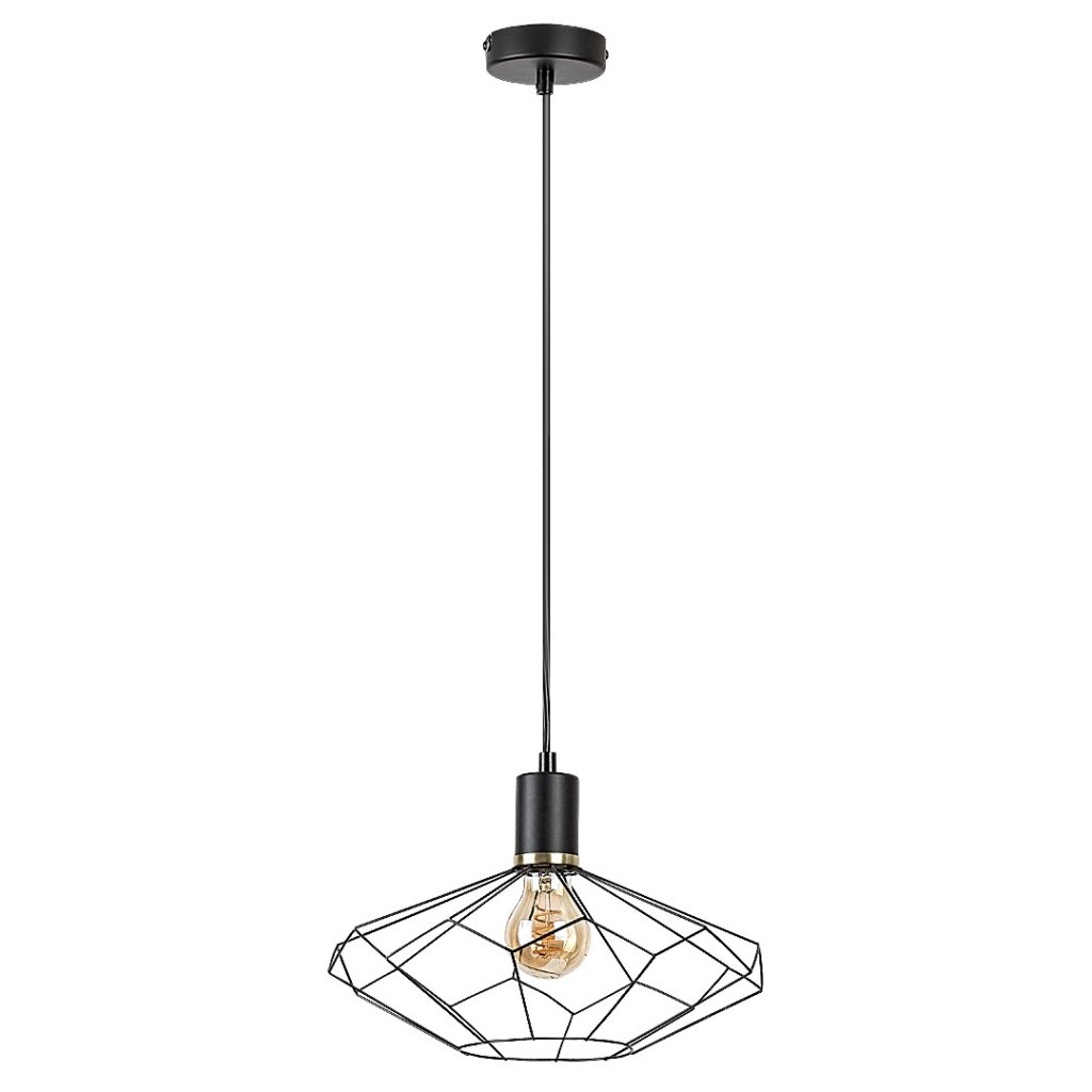 Vintage závesné svietidlo Fran odporúčame predovšetkým do obývačky, jedálne alebo spálne. Matné čierne svietidlo, ktoré je celé vyrobené z kovu, je doplnené tienidlom s tyčou pripomínajúcou tvar diamantu. Svietidlo je možné upevniť na strop pomocou malej okrúhlej dekoratívnej základne. Keďže tienidlo umožňuje plne vidieť zdroj svetla, je dobré zvoliť pre tento model estetickú žiarovku s netradičným tvarom.