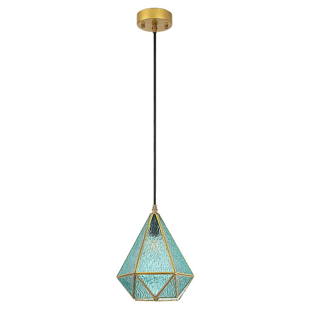 Prívesok Norah v romantickom štýle môže byť jedinečným a elegantným kúskom zariadenia vašej obývačky alebo spálne. Kovové svietidlo zlatej farby je doplnené modrým skleneným tienidlom a je možné ho upevniť na strop pomocou malého okrúhleho ozdobného podstavca zlatej farby. Hlava lampy, ktorá pripomína nádherne vyleštený drahokam, je s ozdobnou základňou spojená čiernym textilným káblom. Norah je možné použiť s jednou žiarovkou s výkonom až 40 W. Typ objímky E14. V závislosti od vašich preferencií a miestnosti, kde chcete lampu nainštalovať, si môžete vybrať svetelný zdroj vyžarujúci teplé alebo prirodzené biele svetlo. Ak by ste chceli túto vintage lampu použiť v spálni, odporúča sa použiť žiarovku vyžarujúcu teplé biele svetlo, ktorá vám pomôže navodiť útulnú, intímnu atmosféru a relaxovať pred spaním. Rozmery závesného svietidla Norah sú nasledovné: výška hlavy svietidla 235 mm, jej priemer 210 mm, vzdialenosť svietidla od stropu 1 200 mm, inštalačný priemer 95 mm. Tento model je dodávaný bez svetelného zdroja.