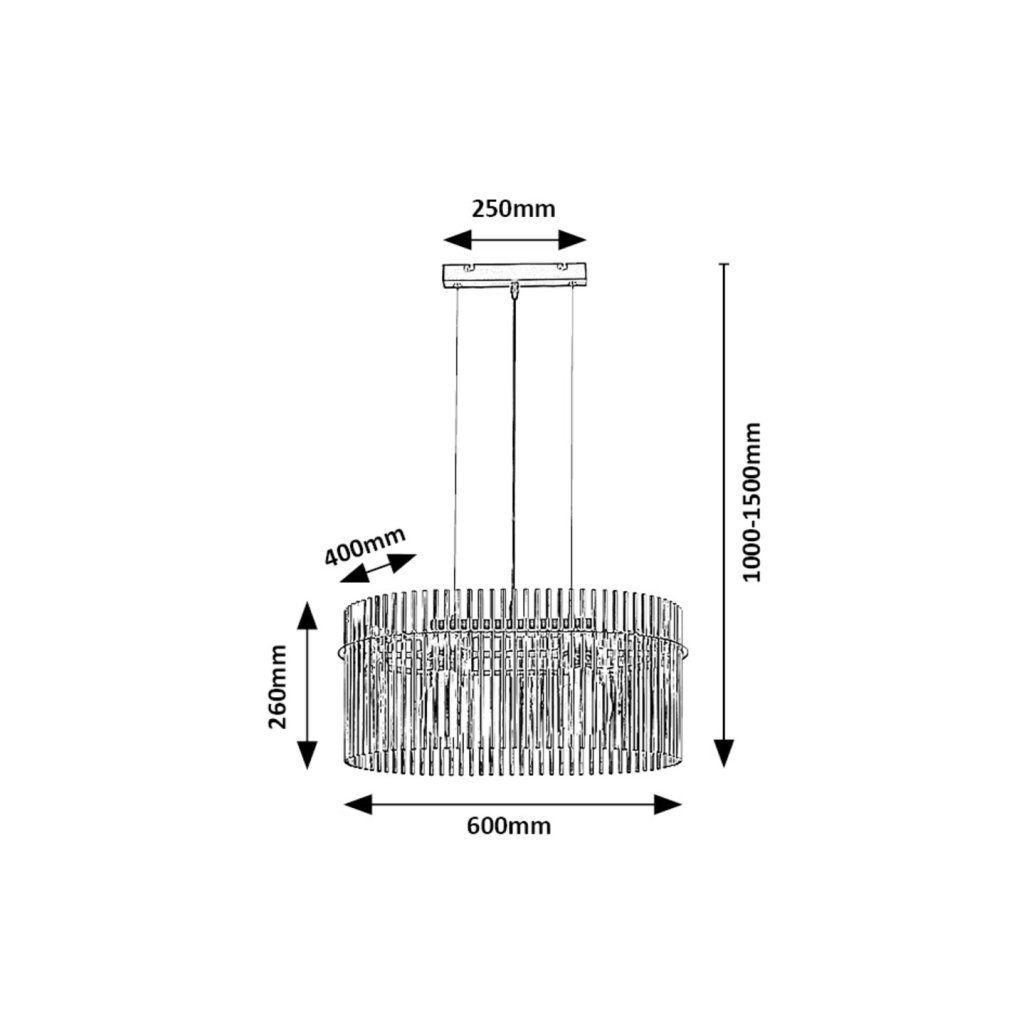 Moderný prívesok Inesa s 2 žiarovkami je elegantnou voľbou do obývacej izby, jedálne alebo spálne. Matné čierne kovové svietidlo je doplnené o tienidlo z tónovaného skla a pomocou podlhovastého ozdobného podstavca je možné ho upevniť na strop. Tenké valcové prvky tvoriace pretiahnuté tienidlo pripomínajú drobné organové píšťaly a obklopujú svetelné zdroje ako záves. Inesa sa dá použiť s dvomi žiarovkami, každá s výkonom do 40 W. Typ objímky E27. Vzhľadom na to, že svetelné zdroje sú cez tienidlo plne viditeľné, je dobré použiť tento model s estetickými žiarovkami s netradičným tvarom. Ak ho inštalujete do spálne, odporúča sa ho prevádzkovať so žiarovkami vyžarujúcimi teplé biele svetlo. Tento typ svetla je pre vaše oči relaxačný a pomáha vám vytvoriť útulnú, intímnu atmosféru. Šírka 2-žiarovkového závesného svietidla Inesa je 600 mm, výška 260 mm, priemer 400 mm, vzdialenosť od stropu je nastaviteľná 1000–1500 mm, inštalačný priemer je 250 mm. Tento model je dodávaný bez svetelných zdrojov.