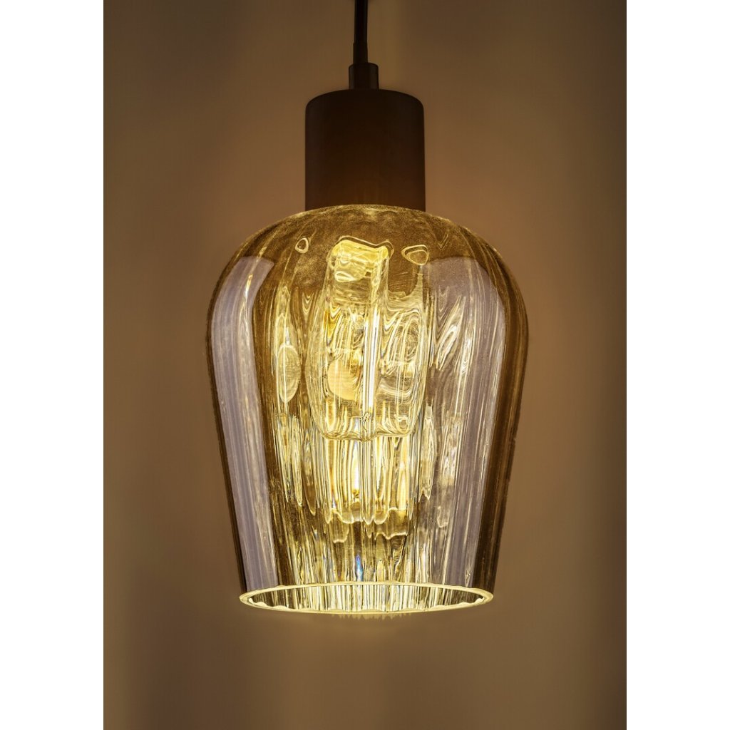 Vintage jednoduchý prívesok Florian odporúčame predovšetkým do obývačky alebo spálne. Matné čierne kovové svietidlo je doplnené valcovým tienidlom, ktoré je zospodu otvorené a smerom nadol sa mierne zužuje. Tento model je možné upevniť na strop pomocou malej okrúhlej dekoratívnej základne. Keďže tienidlo z tónovaného skla umožňuje vidieť zdroj svetla, je dobré zvoliť pre tento model estetickú žiarovku s netradičným tvarom. Florian je možné použiť s jednou žiarovkou s výkonom až 40 W. Typ objímky E27. V závislosti od vašich preferencií a miestnosti, kde chcete lampu nainštalovať, si môžete vybrať svetelný zdroj vyžarujúci teplé alebo prirodzené biele svetlo. Ak by ste chceli lampu použiť v spálni, odporúča sa napájať ju žiarovkou vyžarujúcou teplé biele svetlo, ktoré vám pomôže navodiť útulnú, intímnu atmosféru a pred spaním si oddýchnuť. Rozmery prívesku Florián sú nasledovné: priemer 135 mm, vzdialenosť od stropu 1 500 mm, montážny priemer 90 mm. Tento model je dodávaný bez svetelného zdroja.