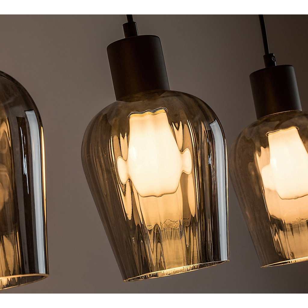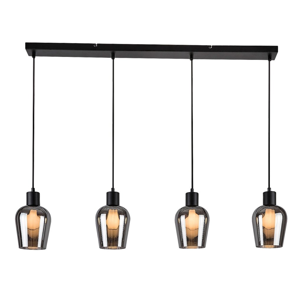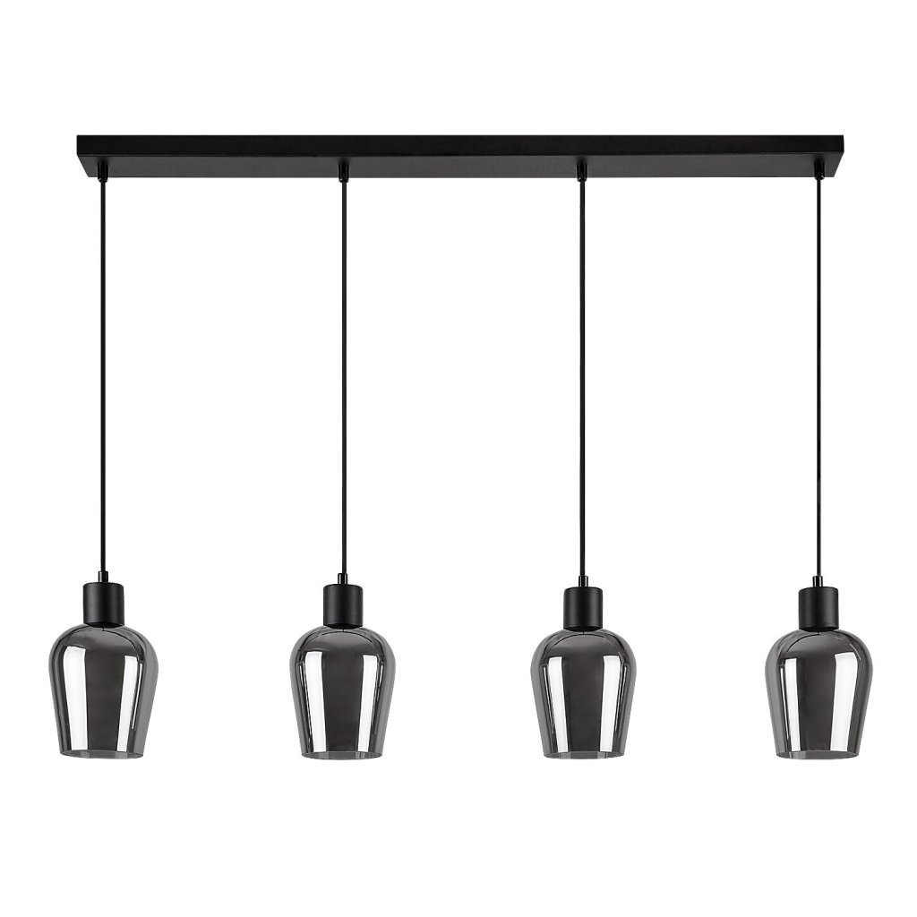 Vintage prívesok Florian so 4 žiarovkami sa odporúča predovšetkým do obývačky alebo spálne. Matný čierny kovový model je doplnený valcovými tienidlami, ktoré sú zospodu otvorené a smerom nadol sa mierne zužujú. Svietidlo je možné upevniť na strop pomocou dlhej obdĺžnikovej dekoratívnej základne. Hlavy svietidiel visia vedľa seba v rade v rovnakej výške. Keďže tienidlá z tónovaného skla umožňujú vidieť svetelné zdroje, je dobré zvoliť pre tento model estetické žiarovky s netradičným tvarom. Florian je možné použiť so štyrmi svetelnými zdrojmi, každý s výkonom do 40 W. Typ objímky E27. V závislosti od vašich preferencií a miestnosti, kde chcete lampu nainštalovať, si môžete vybrať svetelné zdroje vyžarujúce teplé alebo prirodzené biele svetlo. Rozmery 4-žiarovkového prívesku Florian sú nasledovné: šírka 950 mm, priemer každého tienidla 135 mm, výška 160 mm, vzdialenosť svietidla od stropu 1 500 mm. Tento model je dodávaný bez svetelných zdrojov.