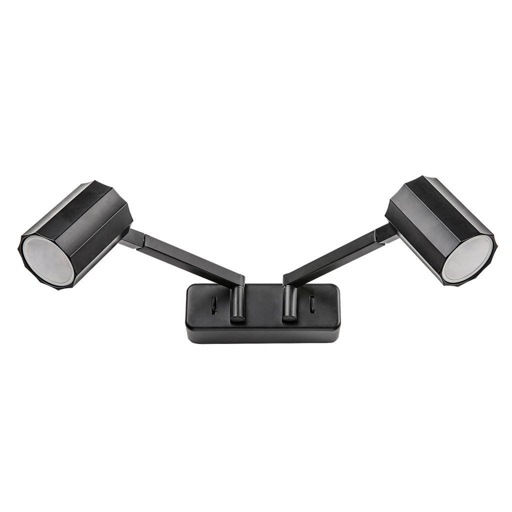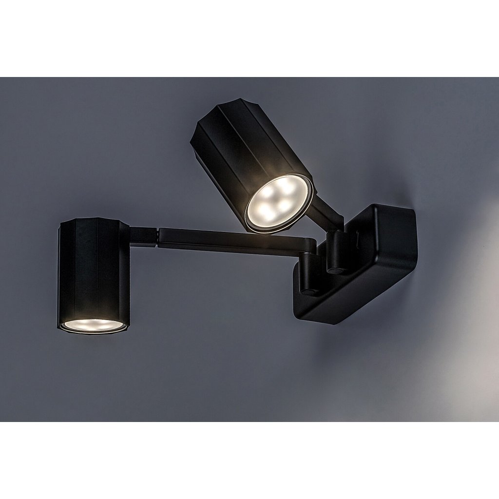 Moderné mobilné nástenné svietidlo Karter s 2 žiarovkami je praktickou voľbou do obývacej izby alebo spálne. Matné čierne kovové svietidlo je doplnené valcovými hliníkovými tienidlami rovnakej farby a lampu je možné upevniť na stenu pomocou horizontálne namontovaného podlhovastého dekoratívneho podstavca. V prípade Karter je to nielen uhol hláv lámp, ktorý je možné nastaviť nahor a nadol v rozsahu 90°, ale aj ramená, ktoré vyčnievajú z ozdobnej základne a držia hlavy lámp, sa dajú otočiť do strán. Vďaka tejto výnimočnej flexibilite možno svetlo nástenného svietidla nasmerovať podľa želania.