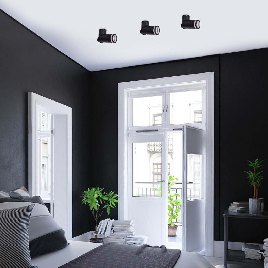 Moderné malé stropné svietidlo Senobia môže byť štýlovou voľbou do vašej modernej obývačky, spálne alebo pracovne. Drobný model čiernej farby je vyrobený z hliníka a je doplnený o biele akrylové tienidlo. Horizontálna časť svietidla v tvare L sa dá otáčať, čím môžete svetlo Senobia nasmerovať viac nahor alebo nadol podľa potreby. Stropné svietidlo je možné použiť s jednou žiarovkou s výkonom až 35 W. Typ objímky je GU10.