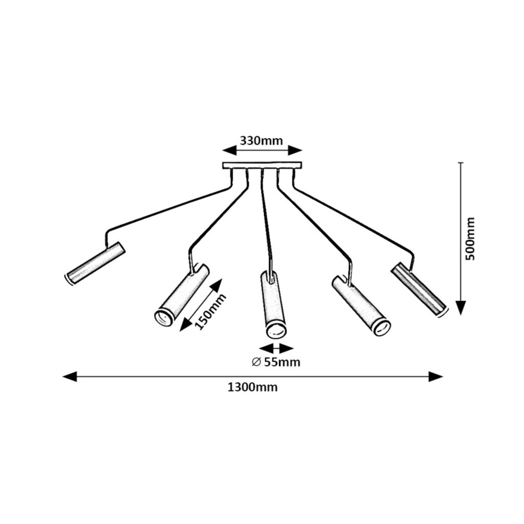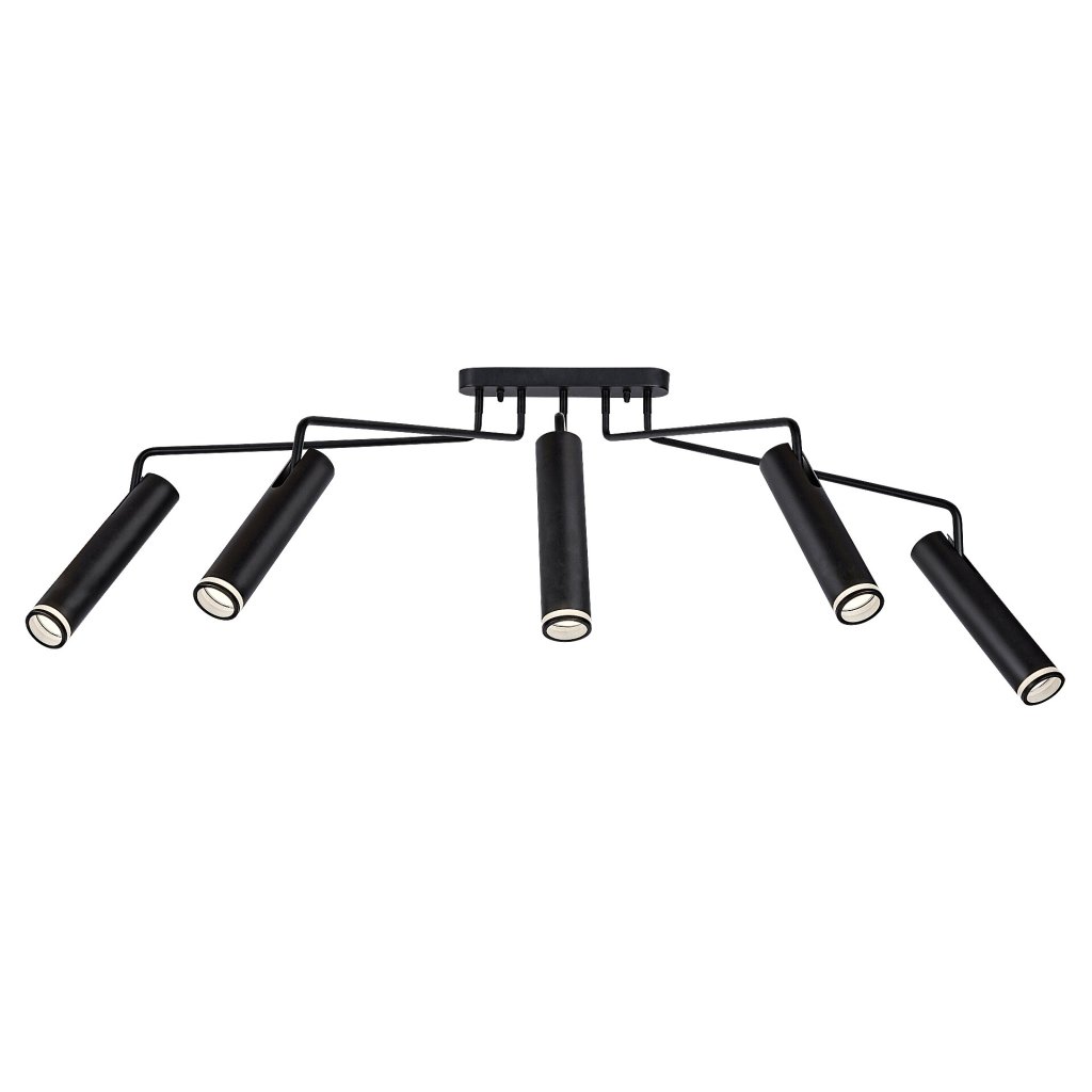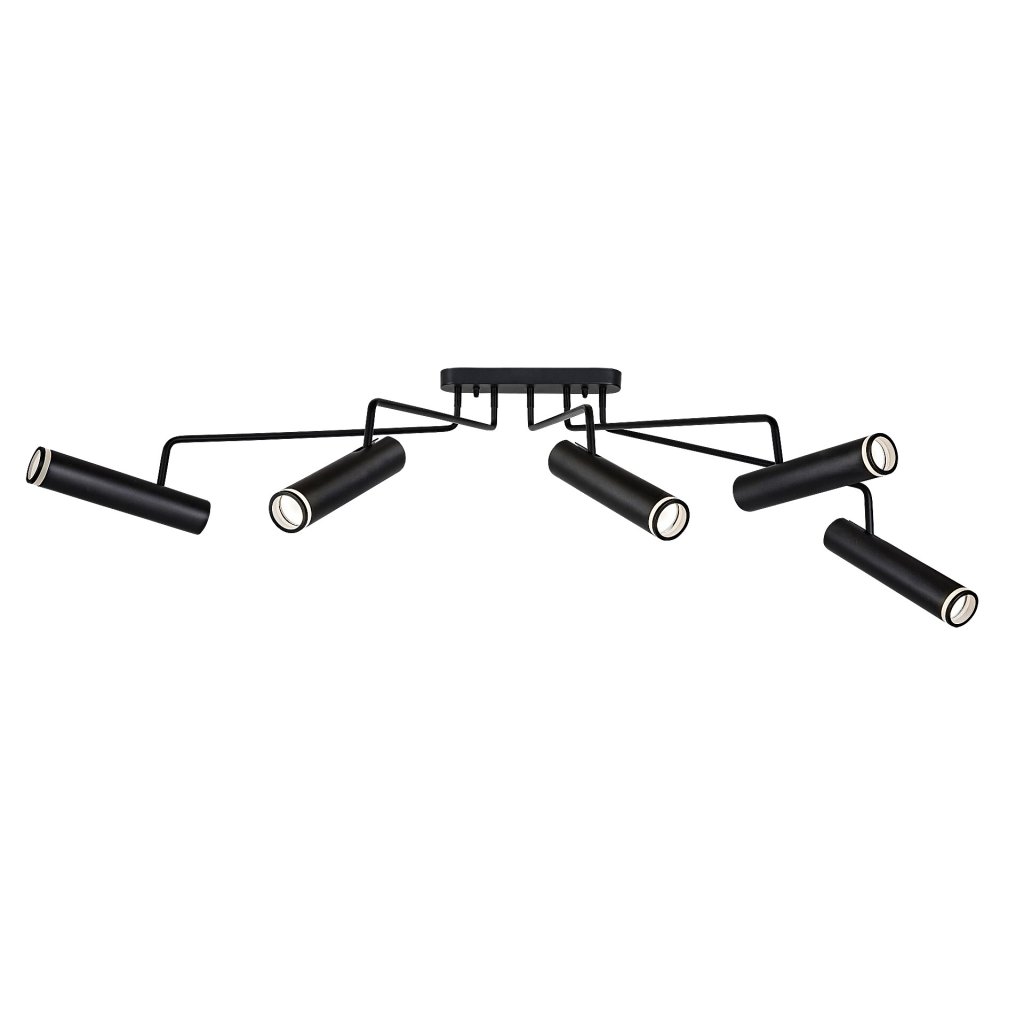 Moderné stropné svietidlo Senobia s 5 žiarovkami môže byť definitívnym kúskom zariadenia vašej obývačky, spálne alebo pracovne. Svietidlo je vyrobené z hliníka v čiernej farbe a je možné ho upevniť na strop pomocou podlhovastého ozdobného podstavca. Cylindrické hlavy lámp s malým priemerom sú umiestnené na koncoch ramien pripevnených k ozdobnej základni a dopĺňajú ich biele akrylové tienidlá. Každé z ramien, ktoré držia hlavy svietidiel, smeruje iným smerom a uhol hláv svietidla je možné nastaviť v rozmedzí 90–180°, takže ich svetlo môžete nasmerovať podľa potreby.