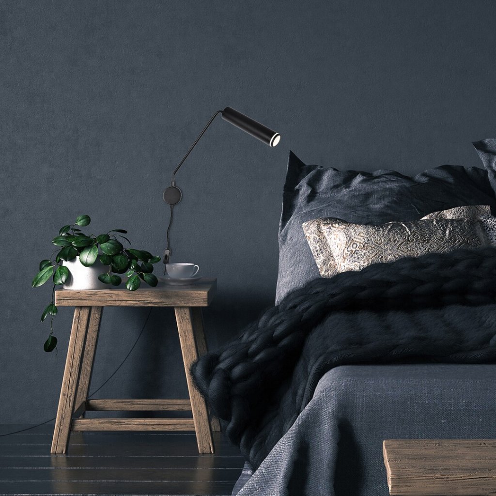 Flexibilné nástenné svietidlo Senobia môže byť charakteristickým kúskom zariadenia vašej modernej obývačky alebo spálne. Čierny hliníkový model je doplnený bielym akrylovým tienidlom a je možné ho upevniť na stenu pomocou malej okrúhlej dekoratívnej základne. Valcová hlava lampy s malým priemerom je pripevnená k dlhému ohybnému ramenu vyčnievajúcemu z ozdobnej základne. Uhol hlavy lampy je tiež nastaviteľný: môžete ho zmeniť medzi 90–180°, čím zaistíte, že svetlo Senobia bude vždy nasmerované tam, kde je to potrebné.