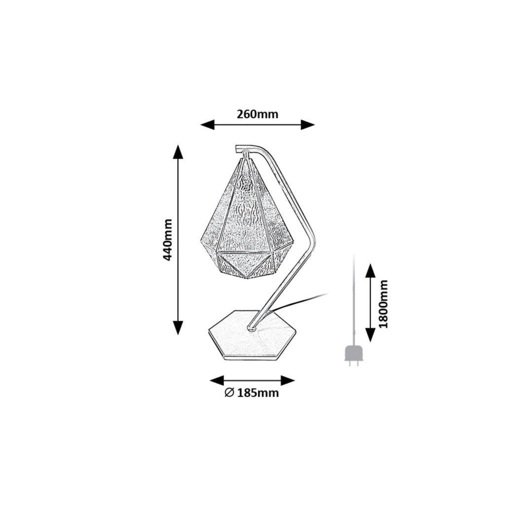 Stolná lampa Norah v romantickom štýle môže byť jedinečným a elegantným kúskom zariadenia vašej obývačky alebo spálne. Dá sa umiestniť na nočný stolík alebo akýkoľvek stolík – vyzerá obzvlášť dobre na drevenom nábytku. Hlava lampy visí z hornej časti ramena zlatej farby, ktoré je v strede ohnuté, a kovovú lampu zlatej farby dopĺňa priehľadné sklenené tienidlo pripomínajúce krásne vyleštený drahokam. Stabilitu Norah zaisťuje šesťhranná ozdobná základňa zlatej farby. Stolové svietidlo je možné použiť s jednou žiarovkou s výkonom do 40 W. Typ objímky je E14. Ak je tento vintage model umiestnený v spálni, odporúča sa použiť ho so žiarovkou vyžarujúcou teplé biele svetlo, pretože vám pomôže vytvoriť útulnú, intímnu atmosféru a relaxovať pred spaním. Stolné svietidlo Norah má čierny textilný kábel a káblový vypínač. Jeho výška je 440 mm, šírka 260 mm, priemer ozdobnej základne 185 mm, dĺžka kábla 1 800 mm. Tento model je dodávaný bez svetelného zdroja.