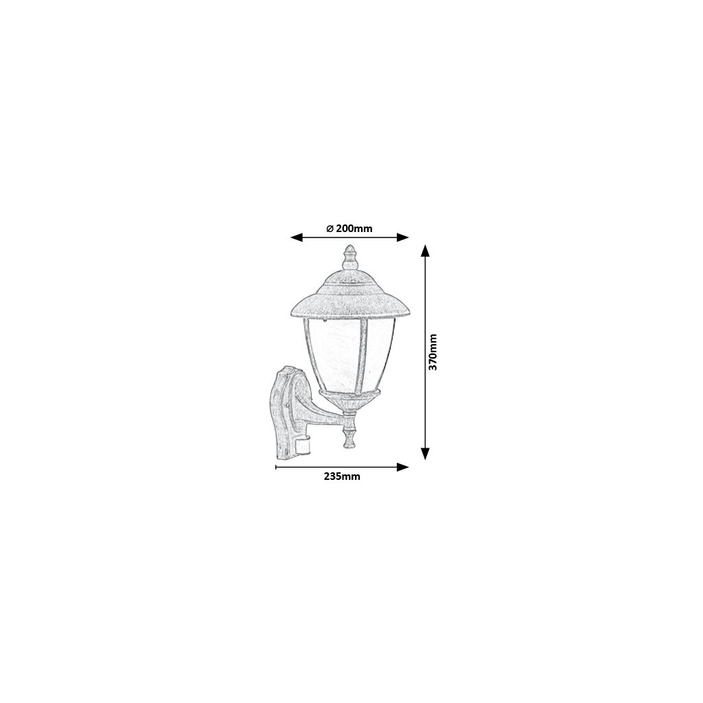 Vonkajšie nástenné svietidlo Madrid je ideálne na osvetlenie terasy alebo schodiska vedúceho ku vchodu. Senzor deteguje pohyb zo vzdialenosti 8 metrov pri 120° pozorovacom uhle. Žiarovka nie je v balení, odporúčame použiť LED žiarovky.