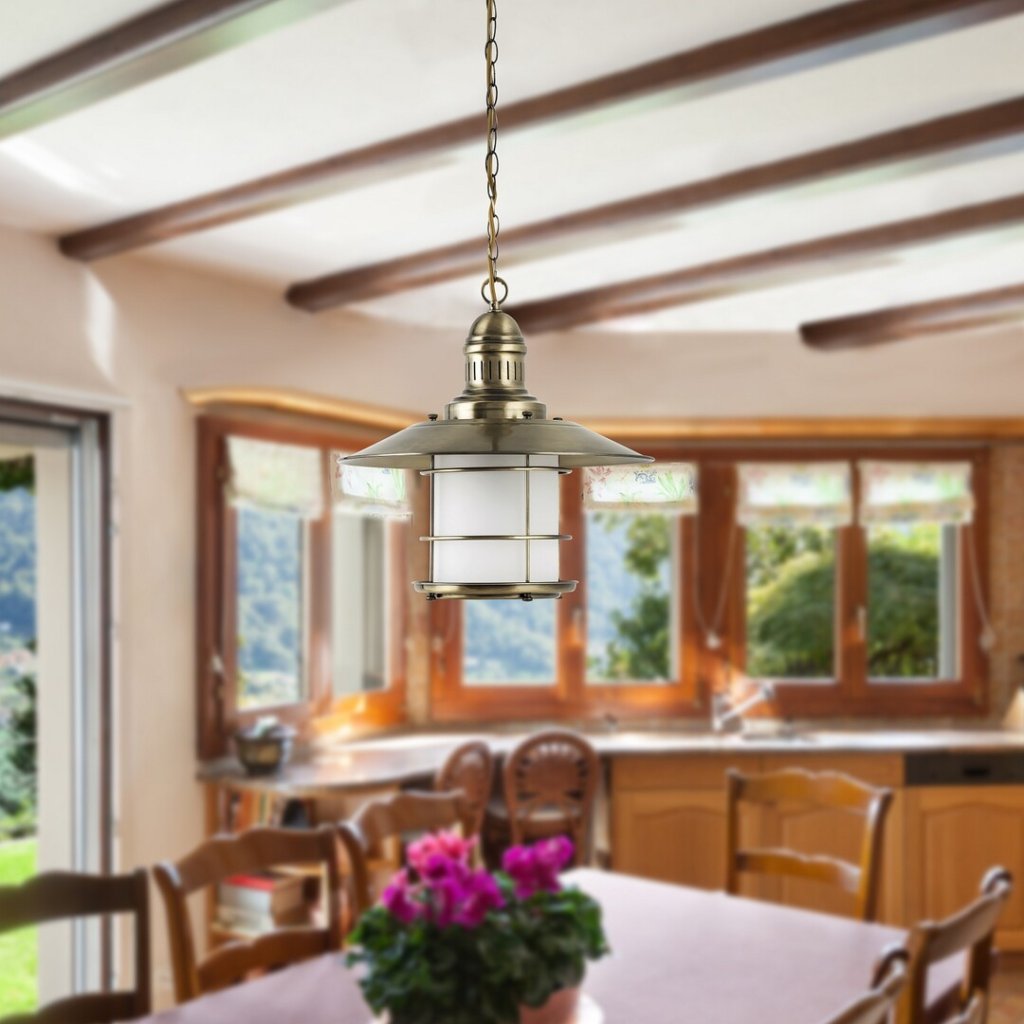 Rustikálny luster vyrobený z kovu v bronzovej farbe je doplnený opálovým skleneným tienidlom. Dokonale vynikne v kuchyni, v jedálni nad jedálenským stolom alebo v zimnej záhrade. Žiarovka nie je v balení, odporúčame použiť LED žiarovky.
