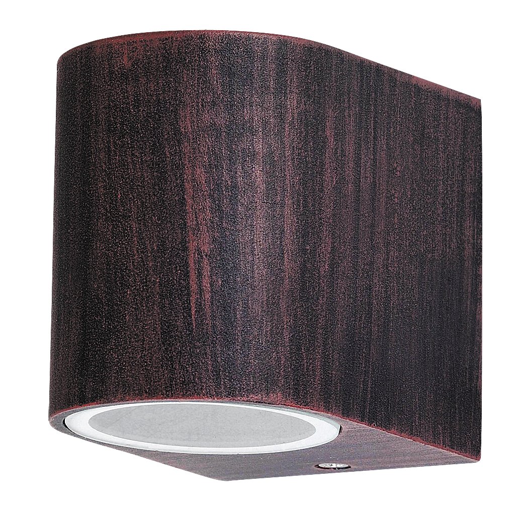 Vonkajšie nástenné svietidlo moderného vzhľadu s 1 objímkou, osvetlené smerom nadol. 8 cm vysoké, 6,5 cm široké, starožitné hnedé kovové svietidlo je doplnené skleneným tienidlom. Žiarovka nie je v balení, odporúčame použiť LED žiarovky.