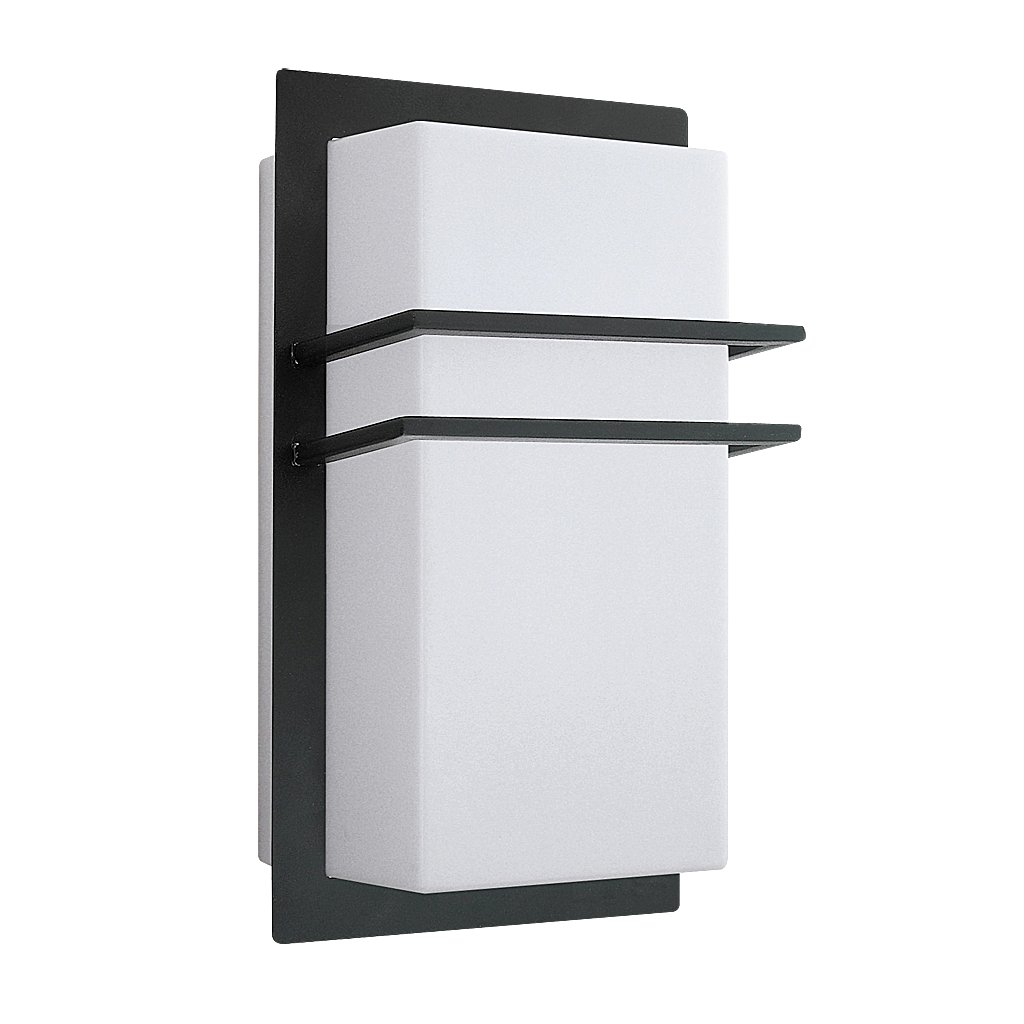 Vonkajšie nástenné svietidlo moderného vzhľadu s UV odolným dizajnom a krytím IP44 proti striekajúcej vode a prachu. Svietidlo je vyrobené z čierneho kovového krytu a plastového tienidla. Svietidlo je možné použiť iba s LED žiarovkou.