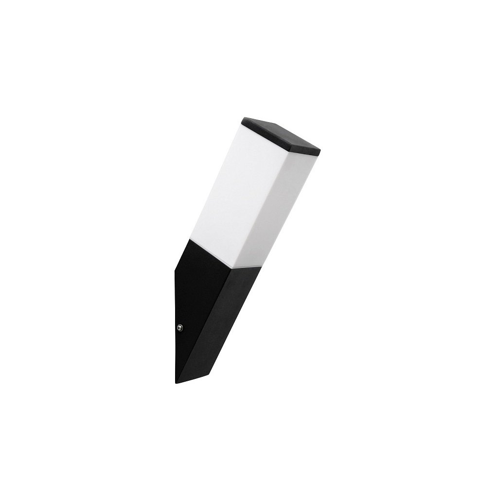 Moderné nástenné svietidlo z matného čierneho kovu a bieleho plastu, odolné voči UV žiareniu a s krytím IP44 ako ochrana pred daždom. Vhodné ako osvetlenie, vchodu do domu, terasy, altánku a pod. Žiarovka nie je v balení, odporúčame použiť LED žiarovky.