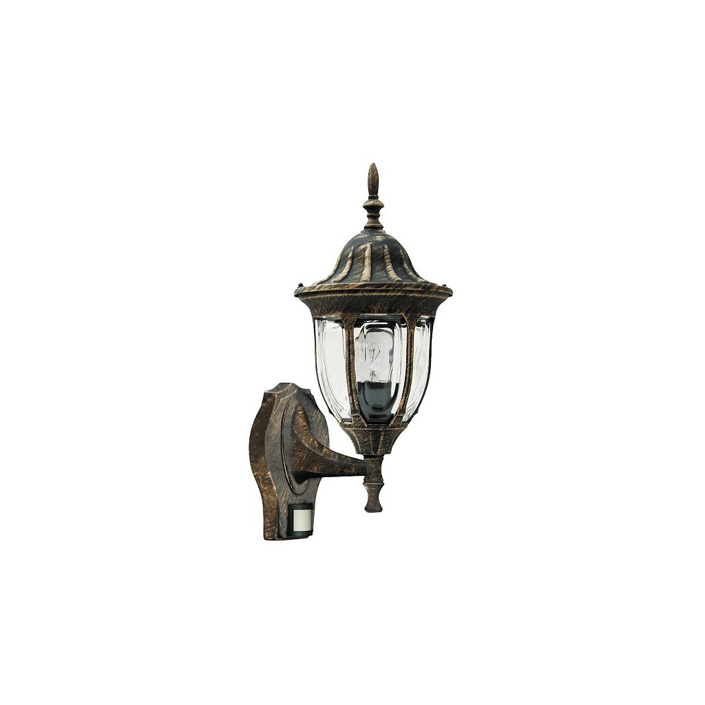 Vonkajšie nástenné svietidlo klasického vzhľadu vhodné ako osvetlenie, vchodu do domu, terasy, altánku a pod. Žiarovka nie je v balení, odporúčame použiť LED žiarovky. Pri umiestňovaní dbajte na to, aby svietidlo zvieralo uhol 120 stupňov, max. Deteguje pohyb na vzdialenosť 8 metrov.