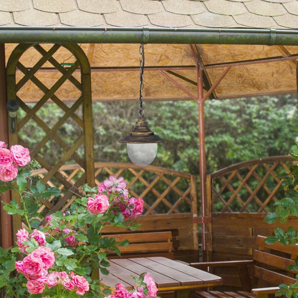 Nadčasový dizajn svietidla vynikne v každej chalupe, vo vonkajšej záhrade alebo na terase. Kovové svietidlo antickej zlatej farby a sklenené tienidlo s krytím IP43. Žiarovka nie je v balení, odporúčame použiť LED žiarovky.