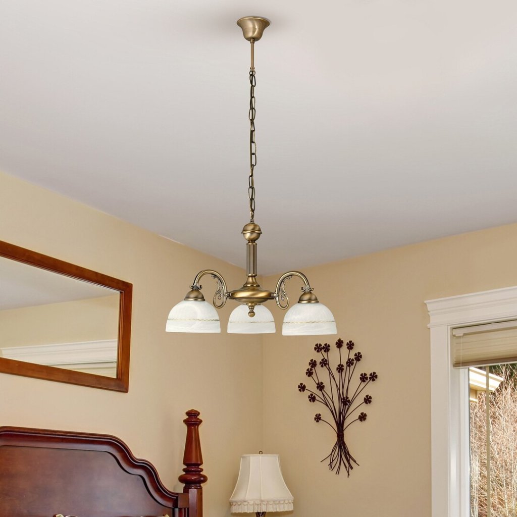 Ak preferujete klasickú eleganciu, tento luster je tým pravým pre váš vkus. Presvedčí vás svojim výzorom, ktorý sa skladá z kovu v bronzovej farbe a s decentným bronzovým vzorom na tienidlách bieleho opálového skla. Dokonale zapadne do obývačky, jedálne alebo do spálne. Žiarovka nie je v balení, odporúčame použiť LED žiarovky.