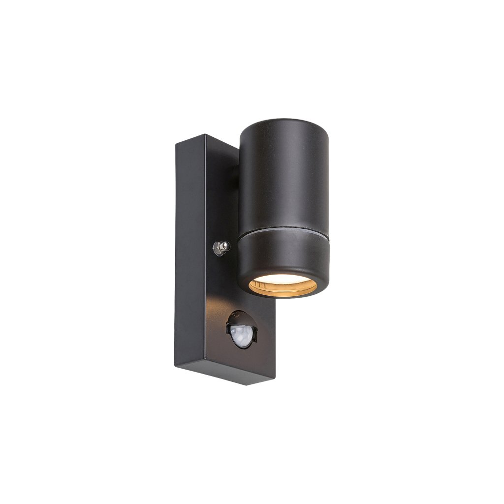 Vonkajšie nástenné svietidlo v čiernom prevedený vyrobené z plastu. Svietidlo je vhodné ako osvetlenie okolia domu, terás a pod. Chránené ochranou IP44 pred vonkajšími poveternostnými vplyvmi. Svietilo je možne použiť, len s úspornou žiarovkou. Zabudovaný senzor pohybu 8m 90°.