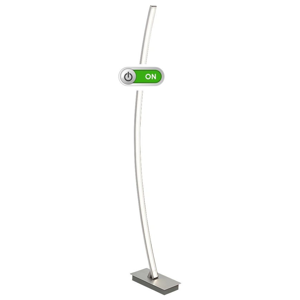 Moderné stojace svietidlo so zabudovaným energeticky úsporným LED zdrojom svetla, napájacím káblom a vypínačom. Výška 137,5 cm, šírka v základni 25 cm, brúsený hliník, kovové svietidlo a plastové tienidlo. Vstavaný LED svetelný zdroj poskytuje svetelný výkon 2100 lúmenov a 3000 Kelvinov teplého bieleho svetla. 5 ročná záruka. Svetelný zdroj inštalovaný vo svietidle nie je vymeniteľný.