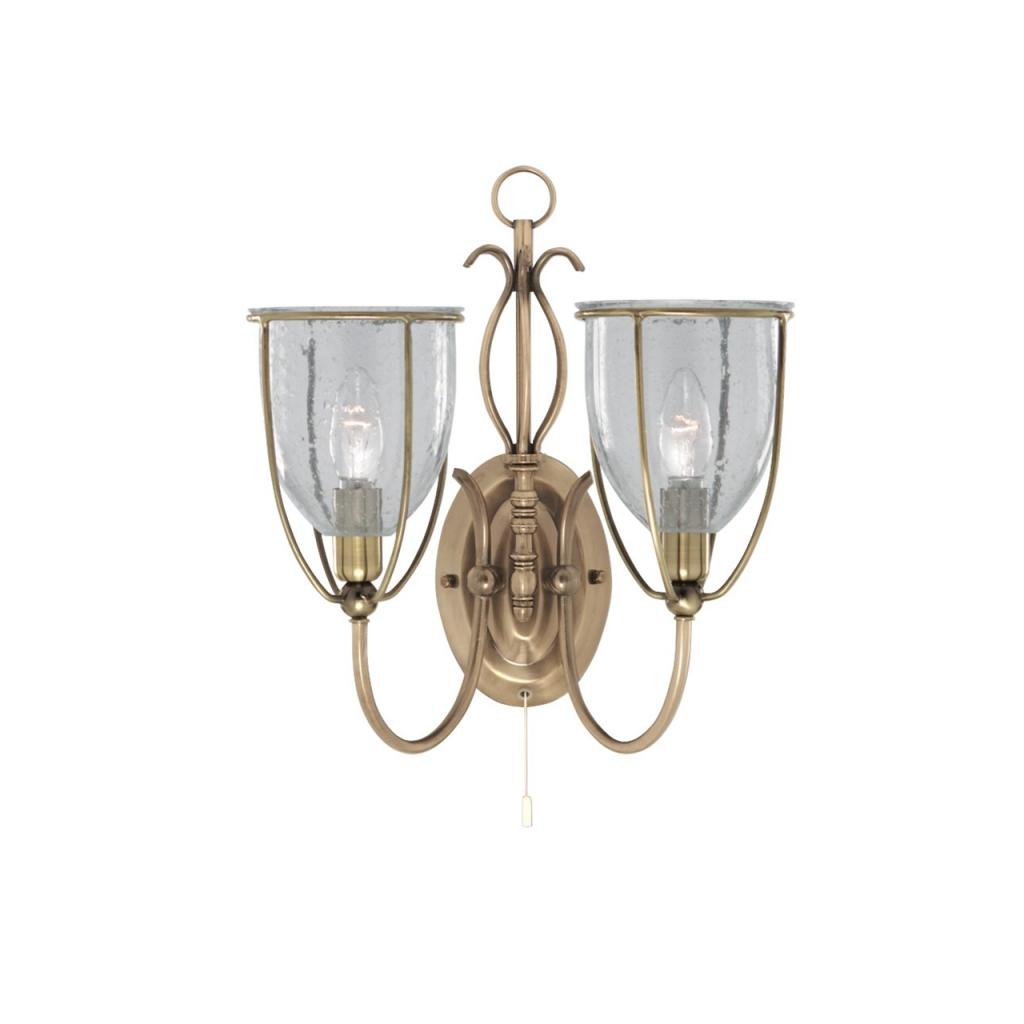 Silhouette 2Lt Wall Light - Antique Brass & Seeded Glass